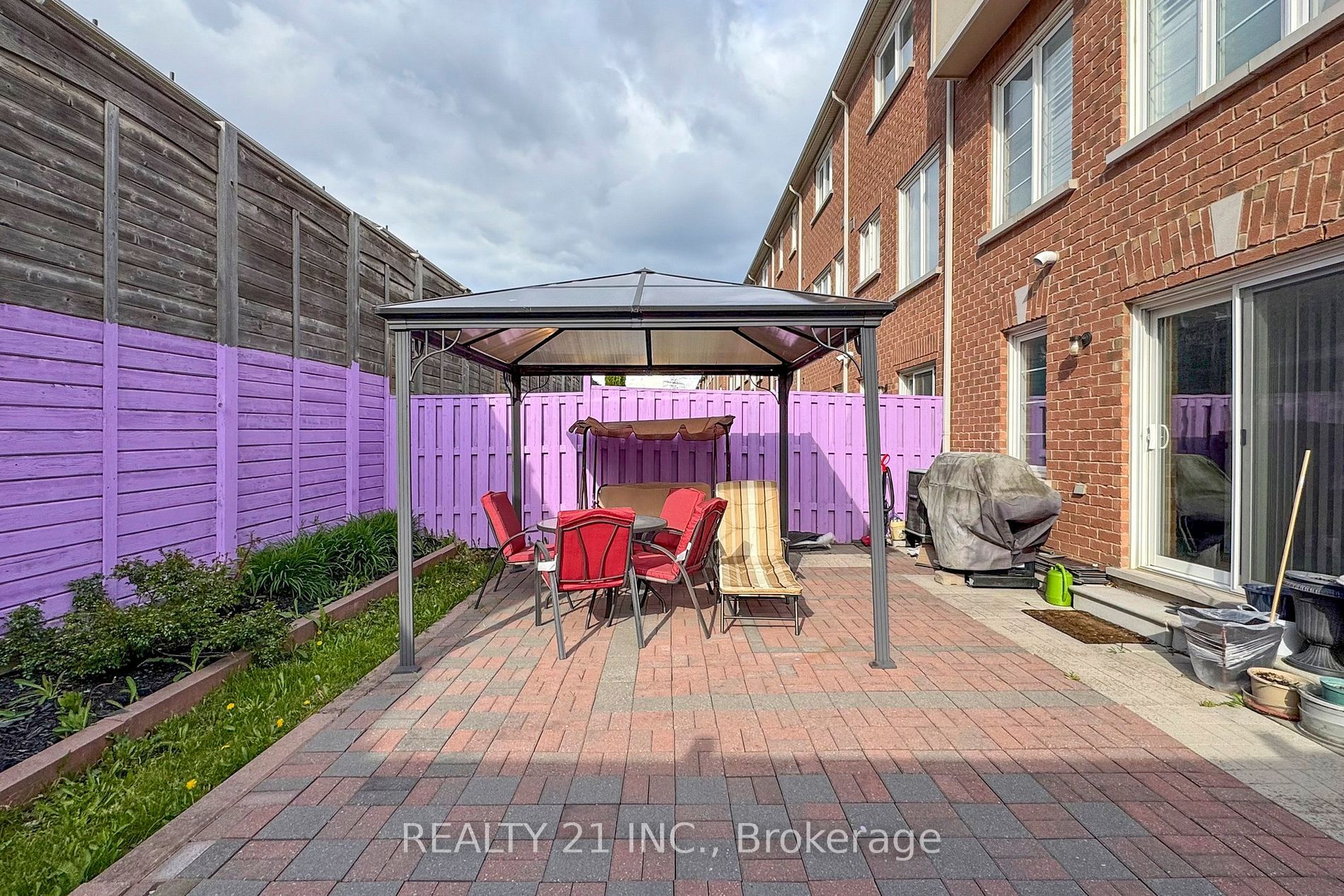 Welcome to This Stunning & Spacious Freehold Townhome on a Prime Corner Lot! Beautifully maintained and thoughtfully upgraded, this 4-bedroom, 3-washroom home also offers the potential for an additional full washroom and features a versatile den on the lower level perfect as a home office or an extra bedroom. Step inside to discover gleaming engineered hardwood floors on the main level, replacing the old carpeting, paired with elegant hardwood stairs and railings. The bright and airy layout includes a welcoming great room that flows seamlessly into separate living and dining areas, ideal for entertaining and everyday family living. The modern kitchen is a chefs dream, featuring granite countertops, a central island, stylish backsplash, and brand-new stainless steel appliances. Enjoy the comfort of custom-made window shutters, backed by a 5-year warranty, and the warmth of natural light pouring in through large windows throughout. Upstairs, you’ll find four generously sized bedrooms. The primary suite boasts a 4-piece ensuite and spacious His & Hers closets. The expansive family room on the lower level offers a walk-out to your private backyard retreat complete with a gazebo, fresh fencing and paint, and professionally paved and landscaped surfaces, perfect for indoor/outdoor living year-round. Additional highlights include: Landscaped pavement surrounding the entire home Updated fencing and exterior painting Potential for a 4th washroom on the lower level Ideally located close to top-rated schools, shopping, dining, parks, and all essential amenities, this home offers the perfect blend of modern comfort and suburban charm. A Must-See for Discerning Buyers! Don’t Miss This Opportunity to Make It Yours.